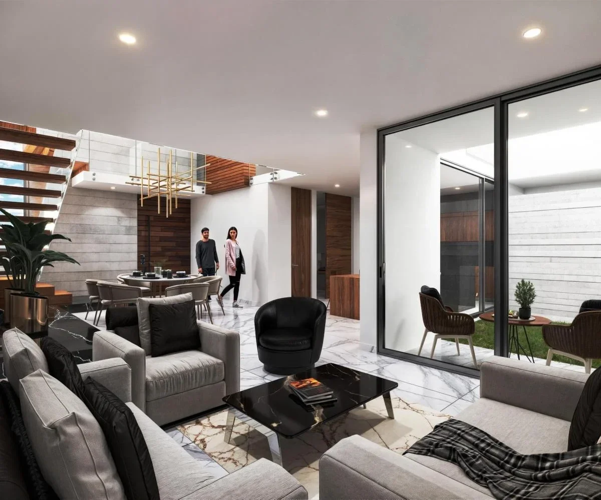 En la planta baja sala comedor con doble altura, medio baño en la planta baja para visitas